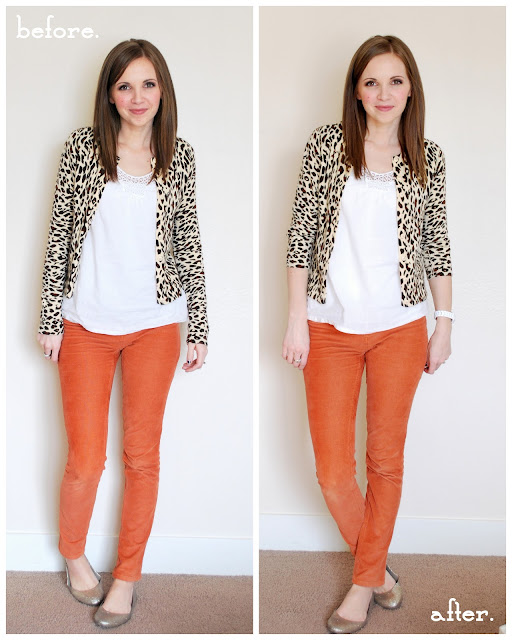 For some reason, I'm not a huge fan of long sleeved cardigans. I can't really pinpoint why, but I just don't love them. My polka dot cardigan is the only long sleeved cardigan I currently own, and as much as I love it, I sometimes wish the sleeves were 3/4 length. Maybe I'll alter that one at some point too.