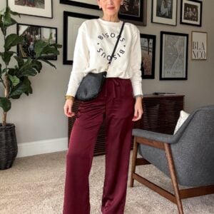 • Wearing something more dressy than your everyday. T-shirt material doesn’t hang as well as chiffon, rayon, linen, double knit, or silk, and could look cheap and unflattering from some angles.