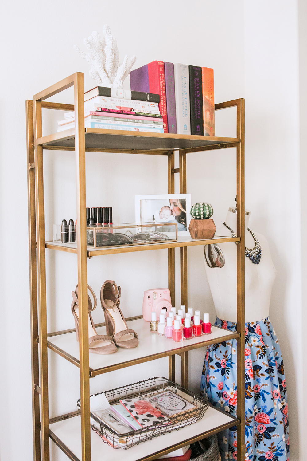 Where do you keep all your sewing stuff?! (Fabric, notions, etc). And do you use that as a dressing room too? I’m just curious why you keep donmany shoes and accessories in there instead of your awesome closet? Very pretty though. I have the hardest time keeping my kids from touching my sewing stuff, do you struggle with that too?