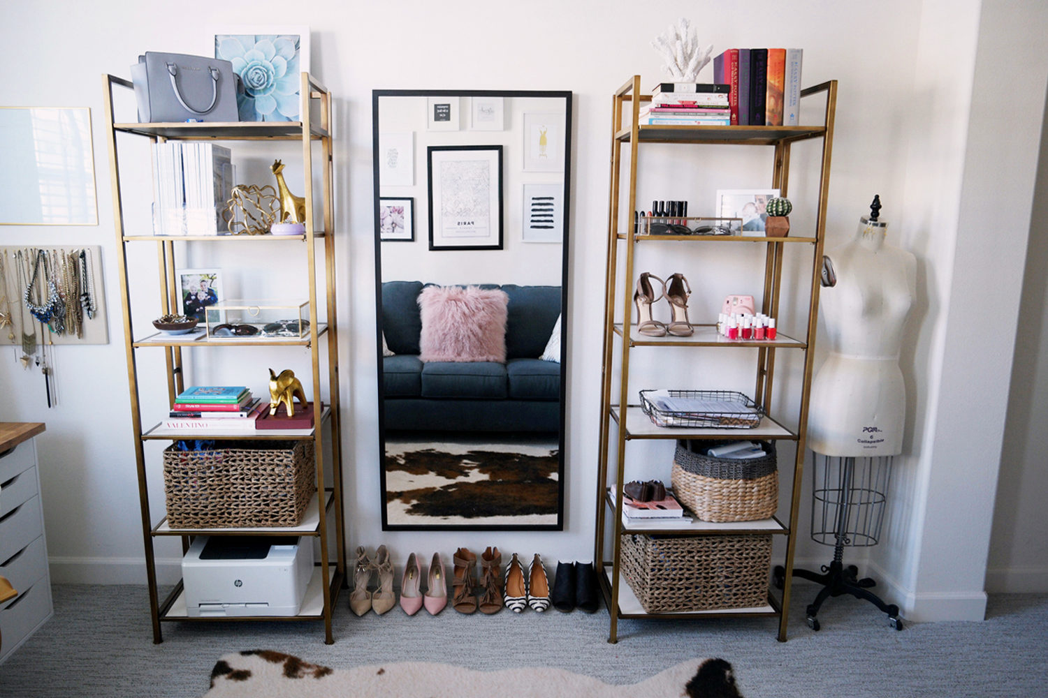 I have almost the same size space with the same dimensions acting as my office/guest room, and I’ve been struggling with what to do with my two tower bookshelves – I love the idea of a mirror between them! Thanks for the inspo 😉