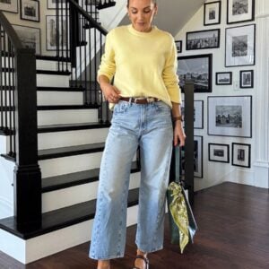 This is one of my favorite go-to outfit formulas for date night: elevated top, comfy jeans, nice sandals. Easy, practical, and nice!