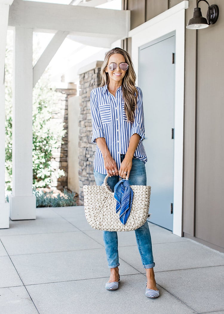Striped Button Up and Heels Outfit | Striped Button Up and Flats Outfit