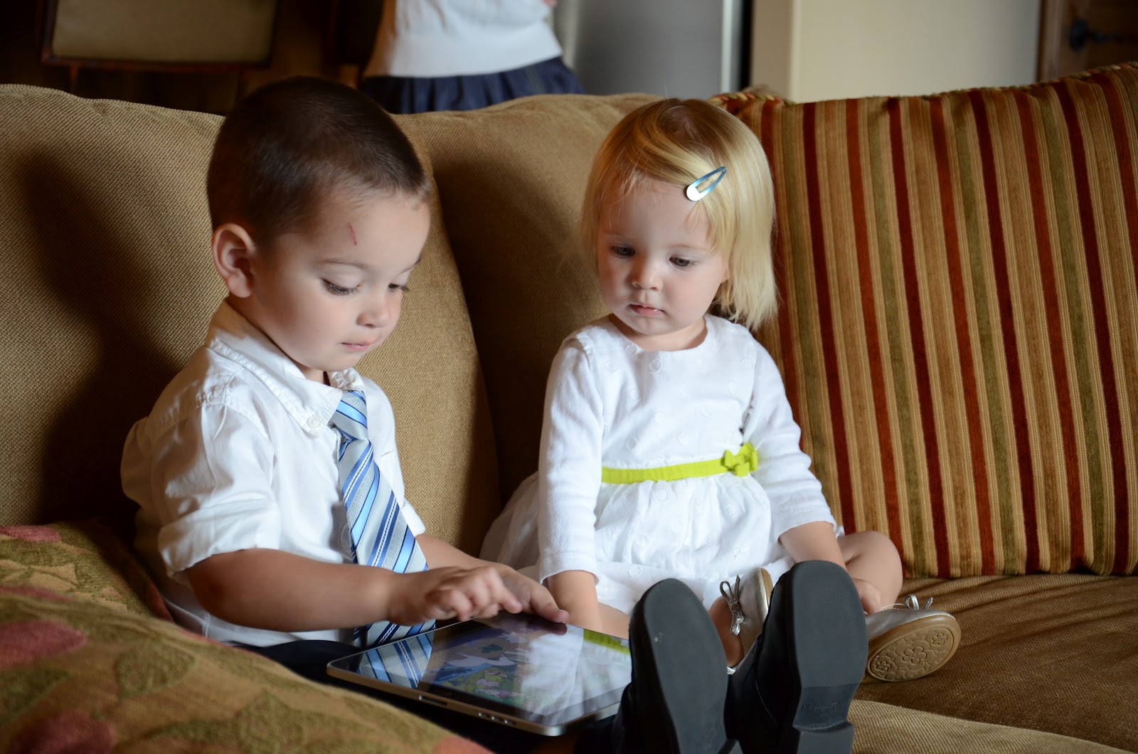 Our last day was Sunday. In the morning, the babies played with the iPad, while simultaneously looking adorable. After church, we headed to a local park where we had lunch and took our family photo (which we’ll be using for our Christmas card this year — if you’re on the list to receive one, act surprised…).