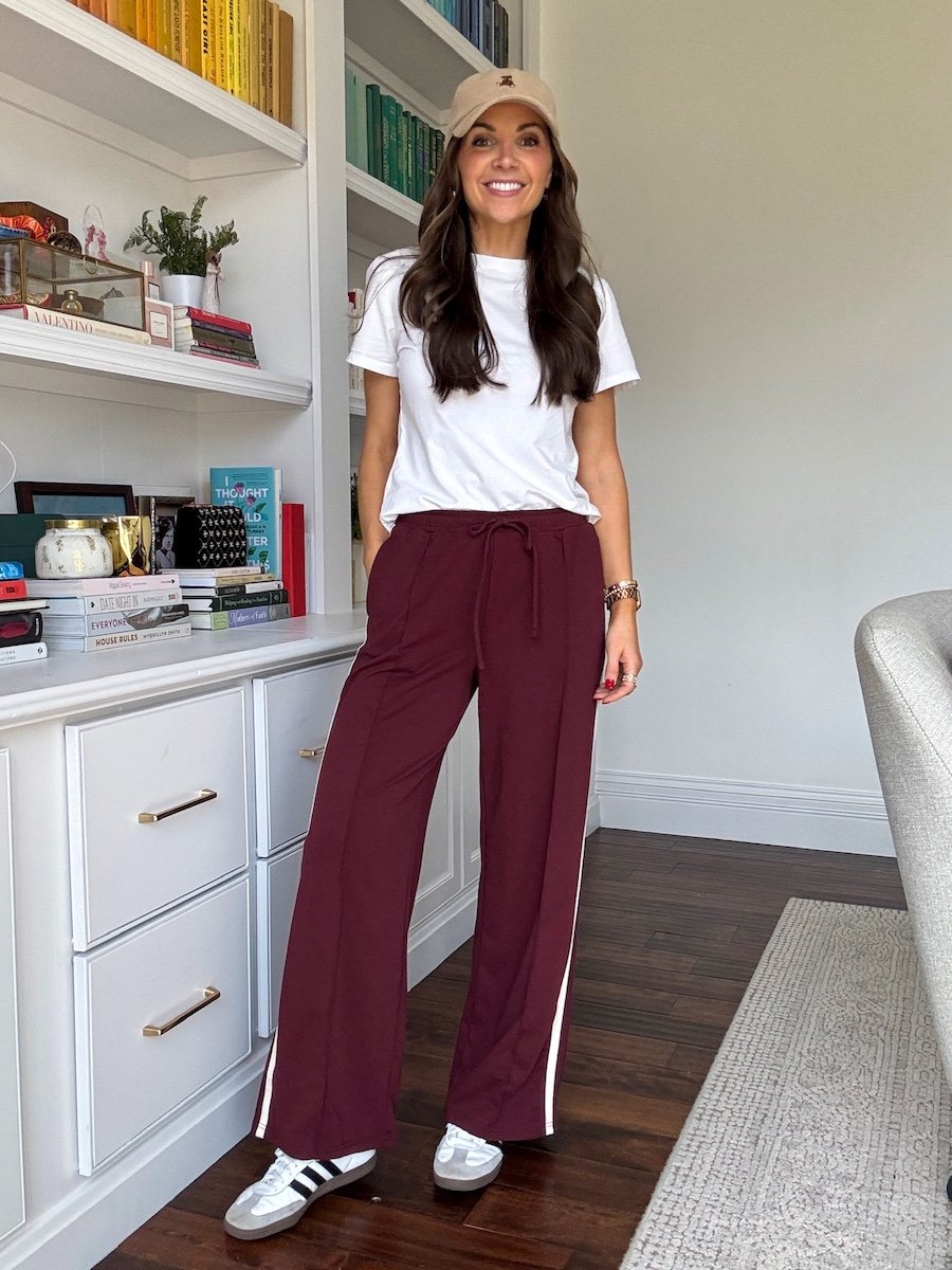 I love a trend that’s equal parts stylish and comfortable, and track pants are the perfect example. But figuring out how to wear them as a 30-something without looking too young or too sporty can feel tricky. Today I’m sharing outfit ideas for styling track pants in ways that feel polished and wearable, whether you’re running errands, traveling, or just want an elevated casual look.