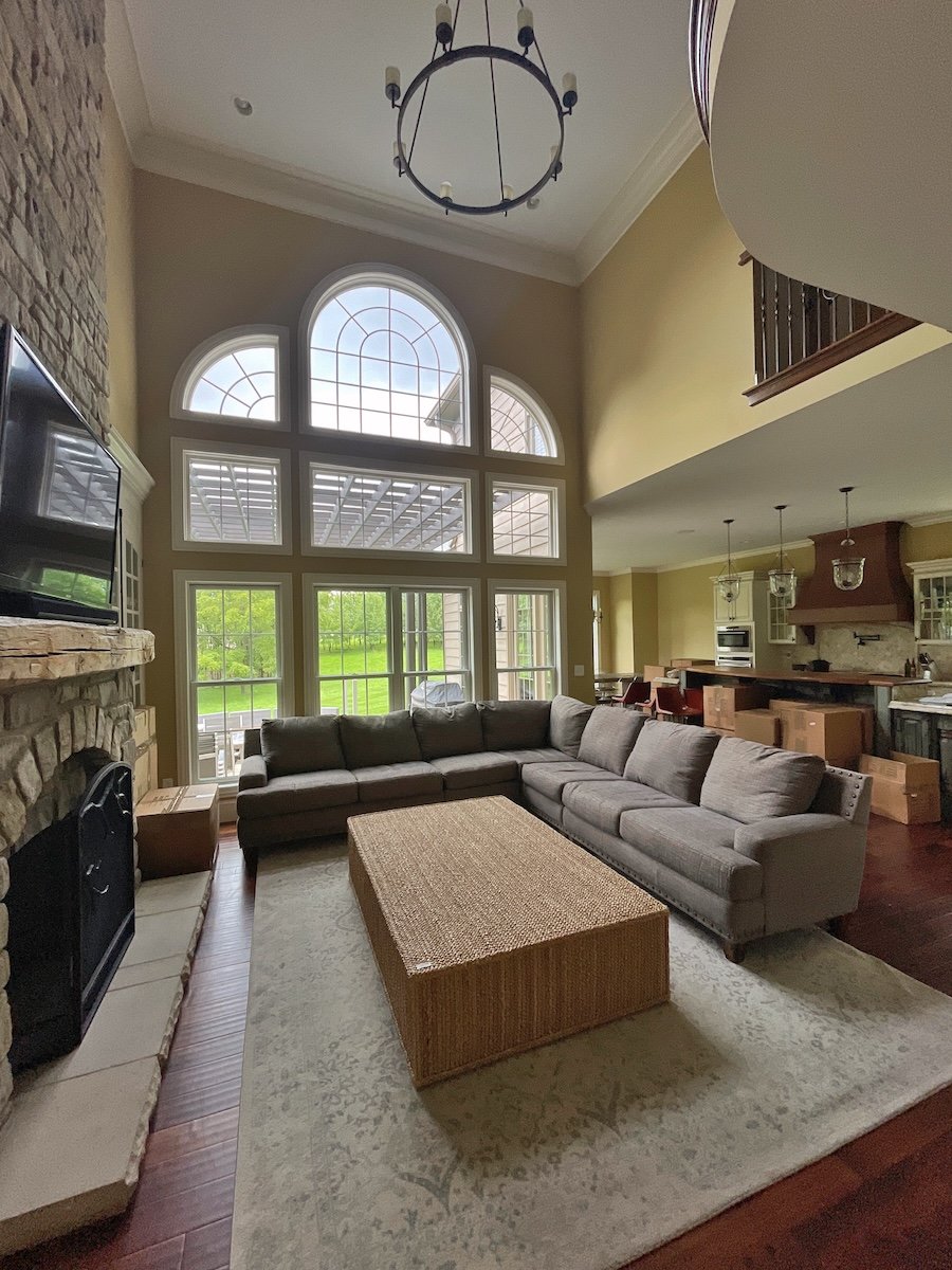 A year later, here’s what it looks like with fresh paint, our furniture, and a full kitchen remodel: