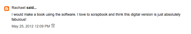 Also, the winner of last weeks giveaway for the My Memories Suite scrapbooking software is Rachael!