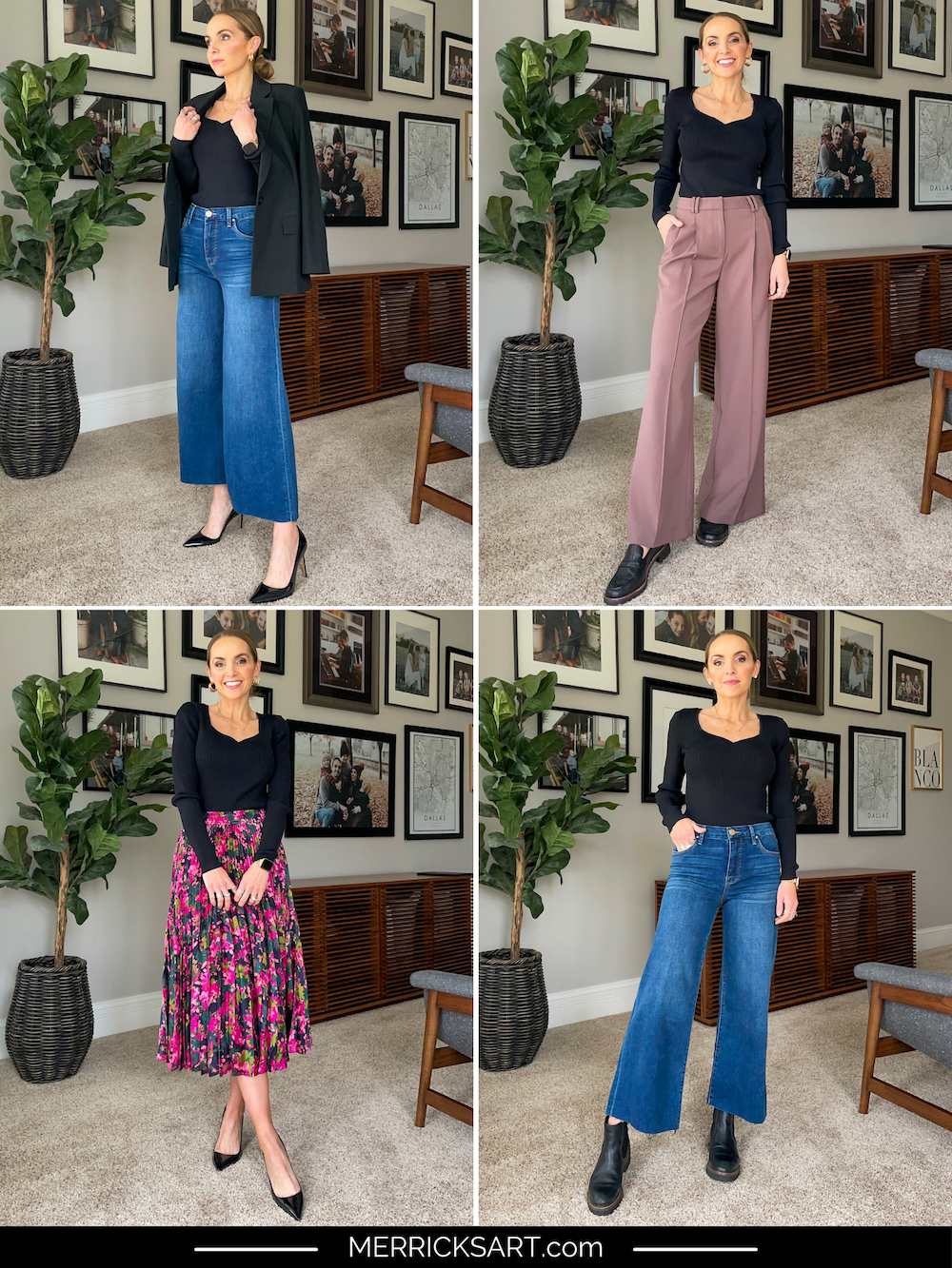 Do you have a top with a sweetheart neckline? Here are some cute outfit ideas with this fun top.