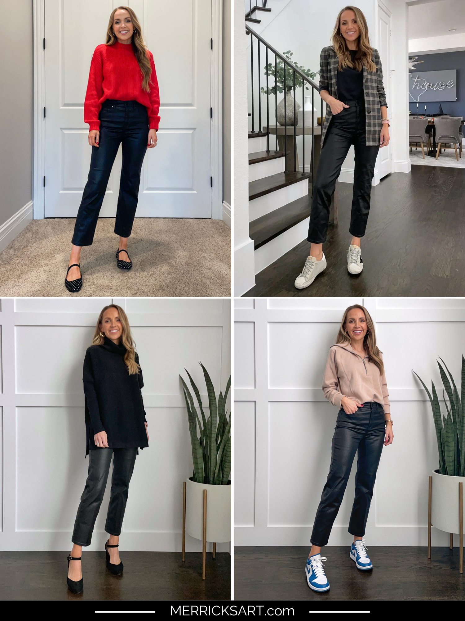 Here are 4 coated jeans outfits for you to copy - they're fun to style and are just edgy enough without being over the top.