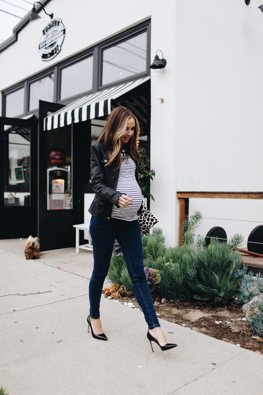 OUTFIT DETAILS: TEE | SIMILAR JACKET | LEGGINGS (non maternity) | SIMILAR FLATS | BAG | NECKLACE c/o RUE GEMBON | DANIEL WELLINGTON WATCH Here’s the deal. Everyone knows that everyone looks better in high heels…it’s just reality. They make you stand taller, make your...
