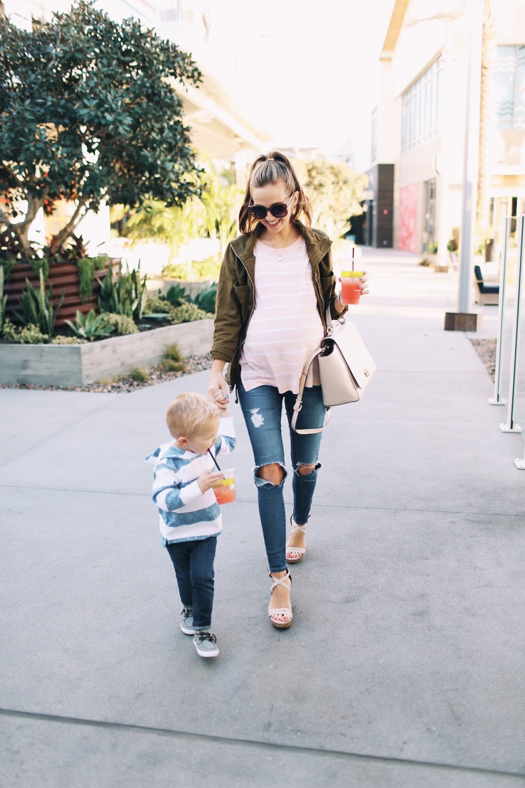 LACE TOP (non maternity, wearing size XS) | SIMILAR LEATHER JACKET | JEANS | SIMILAR SHOES HERE, HERE, and HERE | MICHAEL KORS BAG Over the weekend we drove down to San Diego for a little staycation. I love little getaways with my boys, and this...