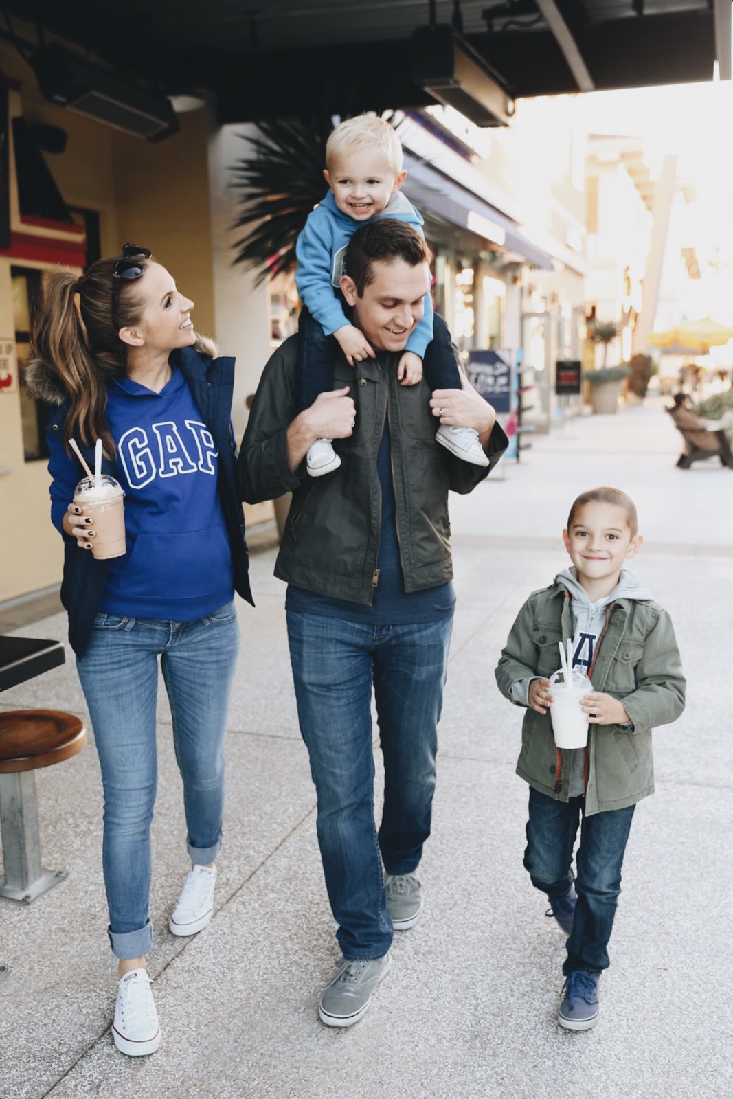 ON ME: GAP FACTORY PUFFER VEST + SWEATSHIRT, c/o || OLD H&M MATERNITY JEANS || WHITE CONVERSE ON PHILIP: GAP FACTORY TEE, c/o || JCREW JACKET || HUDSON JEANS || SPERRY SNEAKERS ON B: GAP FACTORY SWEATSHIRT and JACKET , c/o || OLD NAVY...