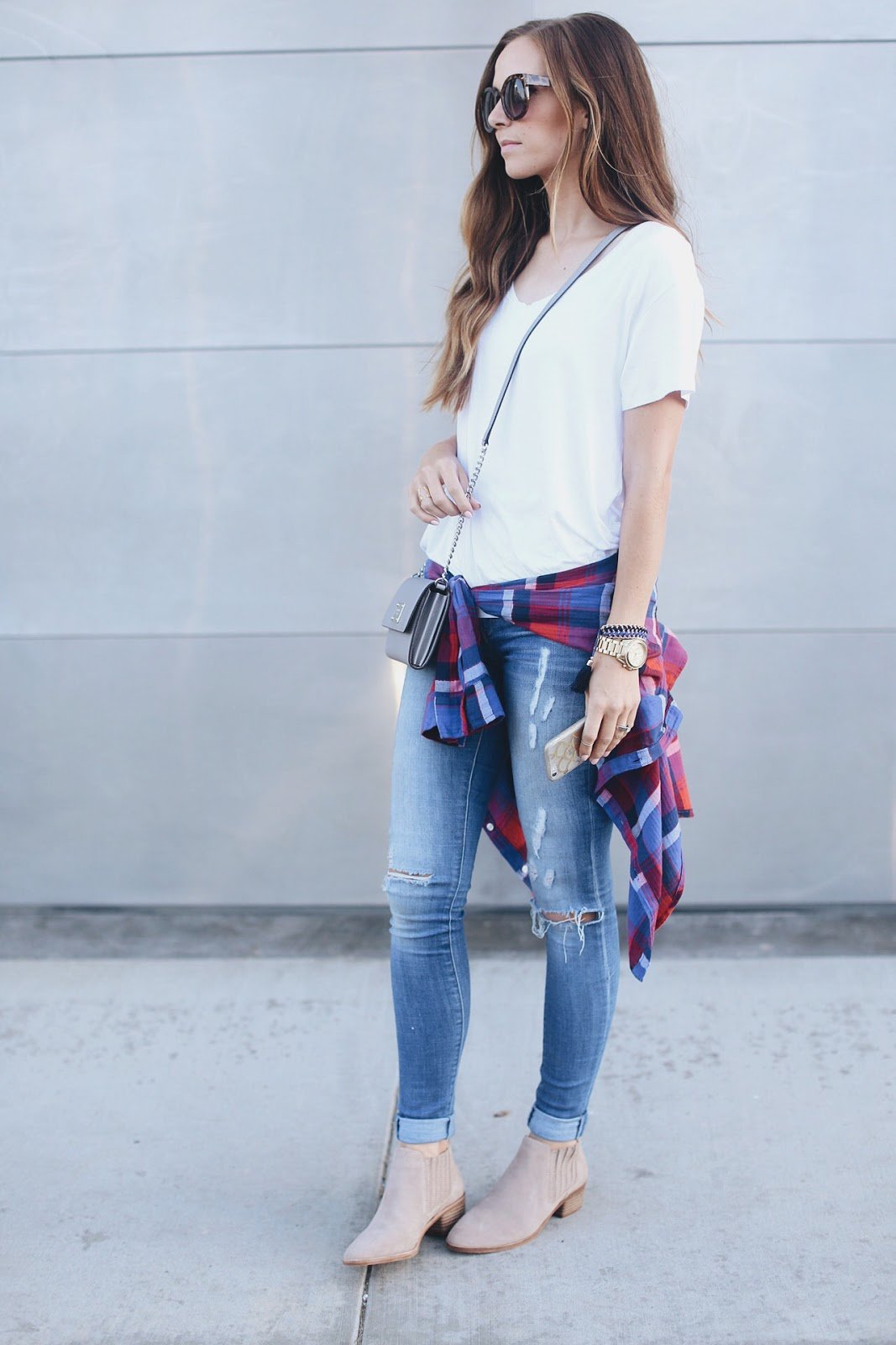 OUTFIT DETAILS: white tee, on sale for under $15! (wearing size small) plaid button up, on sale for under $25! denim (same pair available here, similar pair and more sizes here and here) ankle boots on sale for 35% off! michael kors bag on sale for...