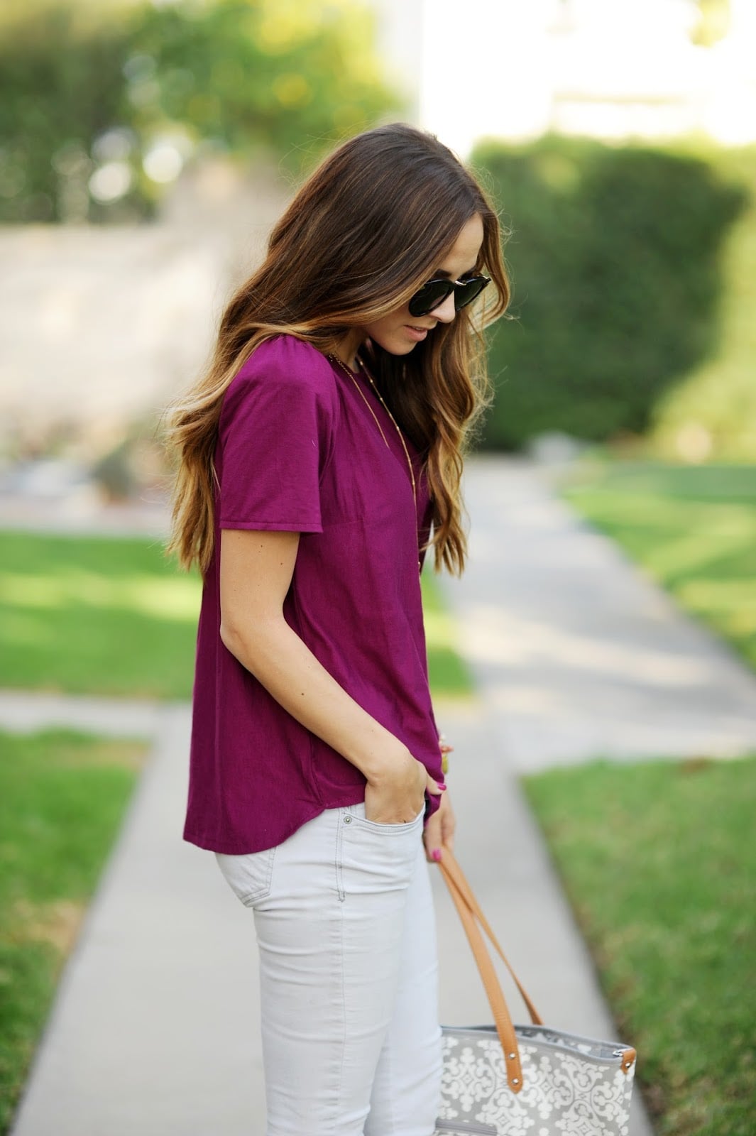 OUTFIT DETAILS: top made by me (similar here) | similar denim | similar wedges here and here | petunia pickle bottom bag | karen walker sunglasses | similar necklace here and here A few weeks ago I was prepping for a photoshoot and needed a blouse...
