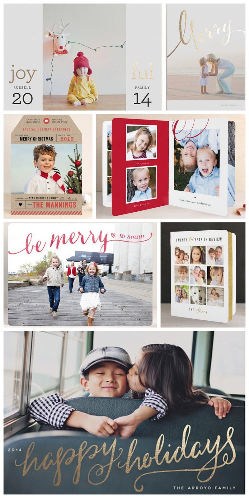 joyful time foil-pressed card // merry calligraphic flourish foil-pressed card destination luggage tag cards // merry booklette be merry script holiday cards // year in review booklette happy holidays foil-pressed card Sending holiday cards is one of my favorite Christmas traditions. Besides bills and jury duty, I don’t get a lot...