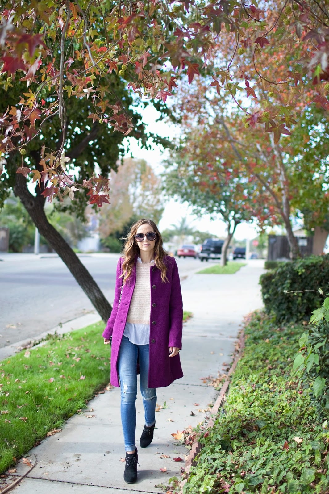 land’s end wool coat, c/o forever 21 sweater old navy blouse, similar dittos jeans, c/o nordstrom bag, similar here sole society boots urban outfitter sunglasses PHOTOGRAPHY BY SARA WALK This season I’m obsessed with jewel tones and have added a few pieces in these rich colors...