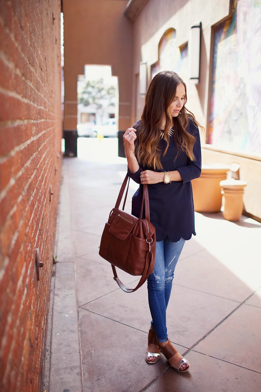 scalloped hemline top, made by me (tutorial below — similar here and here) dittos jeans (similar here) dolce vita wedges lily jade bag gorjana necklace and bracelet michael kors watch I don’t know what it is about scallops, but I just love them. They’re a simple...