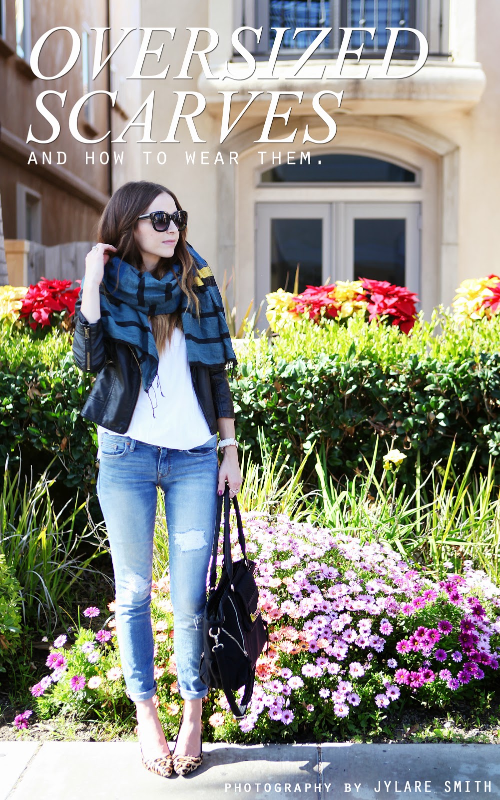 photos by JYLARE SMITH ______________________________ tee: h&m jacket: c/o choies jeans: gap heels: c/o sole society (similar) scarf: c/o tea collection (similar) bag: c/o sassy steals sunglasses: c/o lulu*s Scarves are such a perfect spring piece, and they’re huge this year — both literally and figuratively (have you guys heard the...