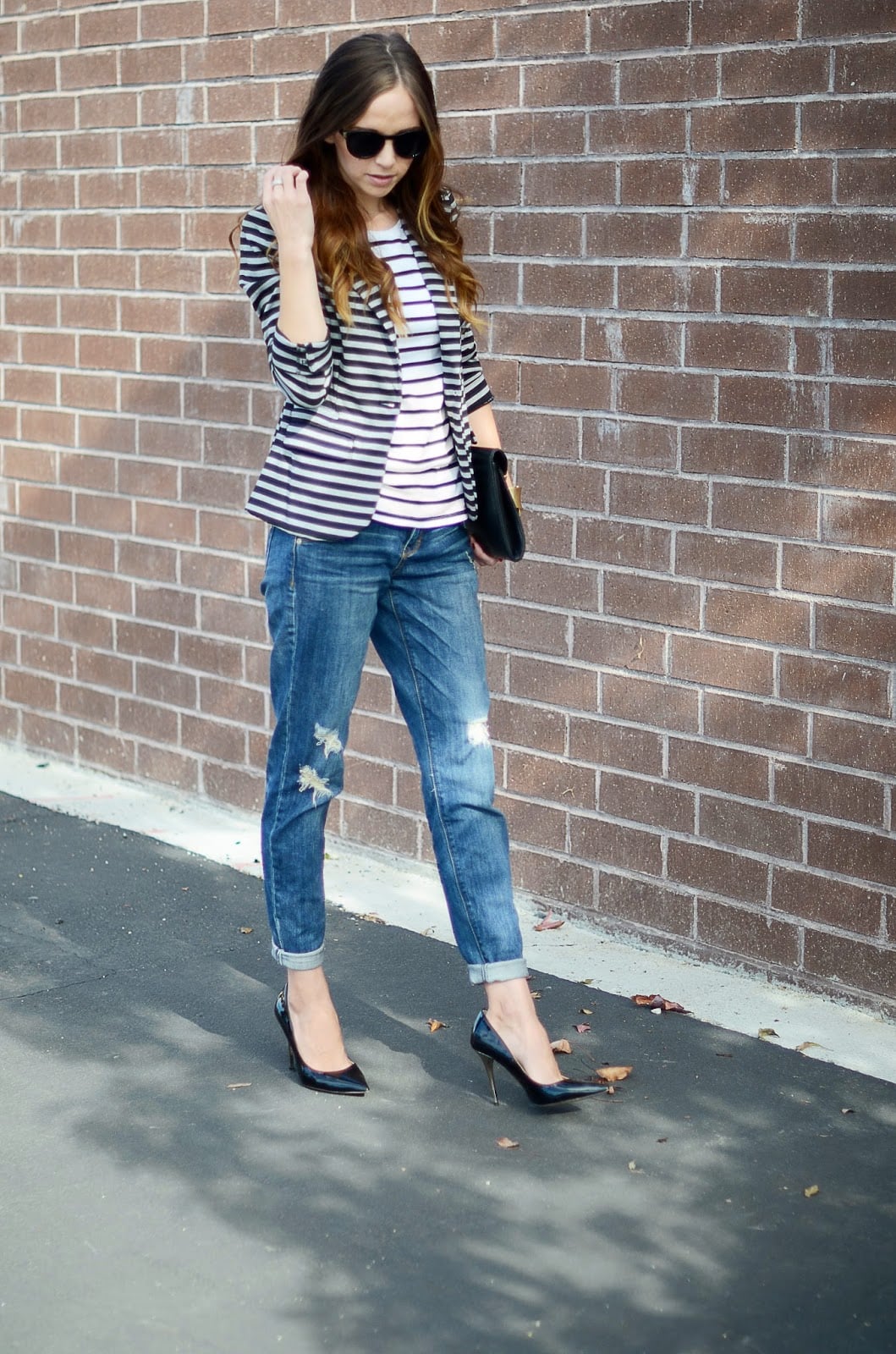 I sometimes have a hard time wearing blazers because I feel like they make me look so professional, but wearing it with a pair of distressed boyfriend jeans perfectly compliments and casualizes it (I made that word up just now). Plus, you all know how...