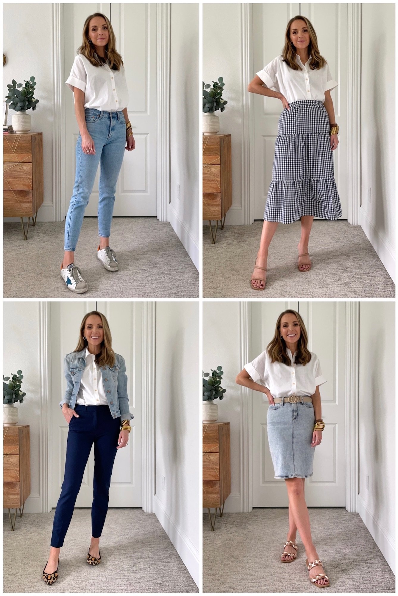A white button up shirt is such a classic piece, and so versatile. Here are four cute button up shirt outfits for spring.