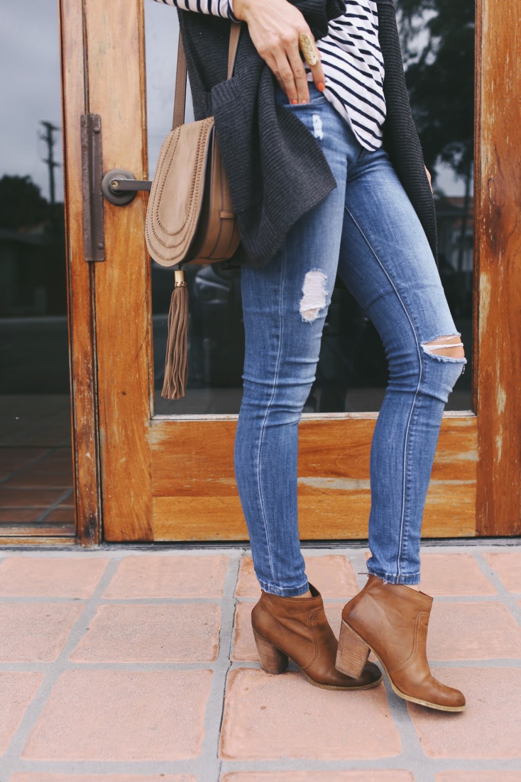3. The classic ankle boot. I cannot ever get enough ankle boots. These are the shoe that is perfect for transitioning to cool weather. They’re great for dressing up or down, and a classic one like this goes with everything. Pair it with jeans, skirts, dresses, or even shorts on those warmer fall days!