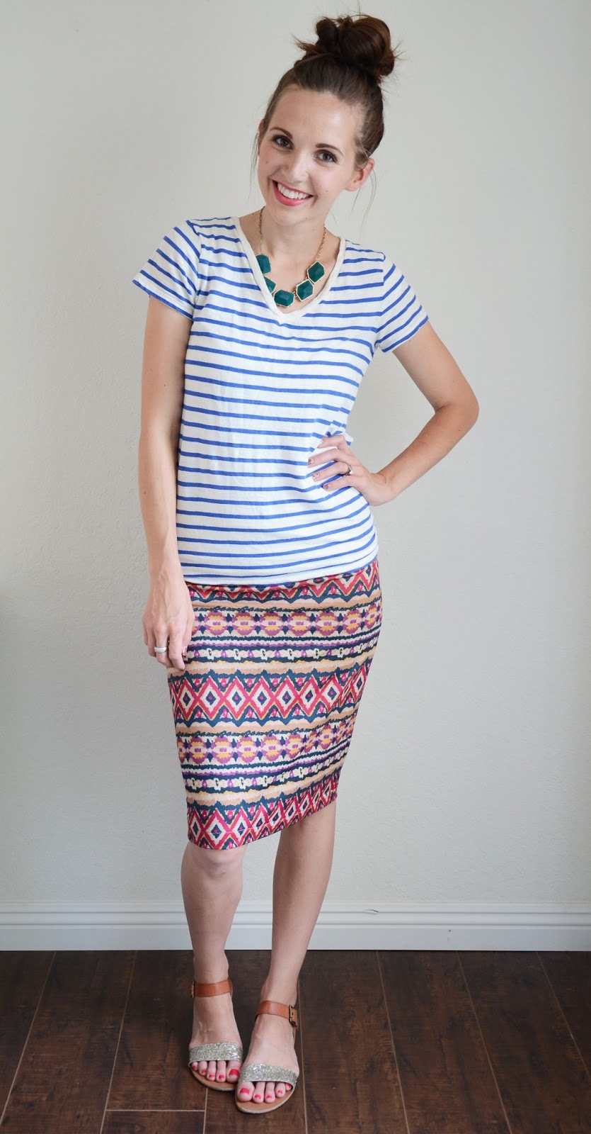 8. You should know by now that I love pattern mixing. Although this is a pretty bold pairing, the colors in the top and skirt are similar so it works. I added a simple but bold
