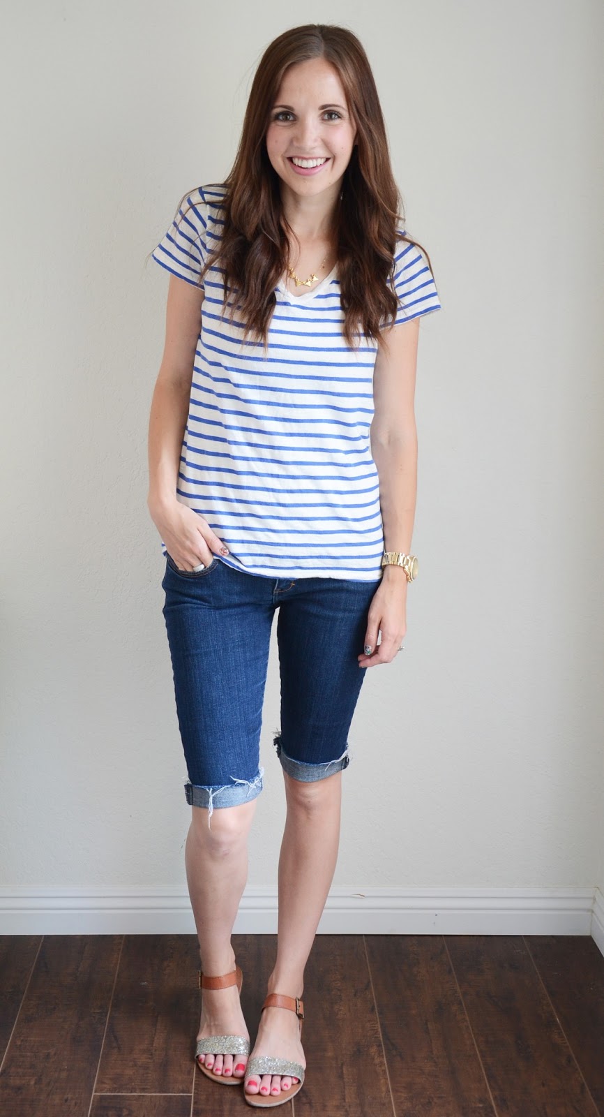 5. White jeans go with everything, and a navy and white striped top goes with everything. A match made in heaven. I cuffed the jeans, added a